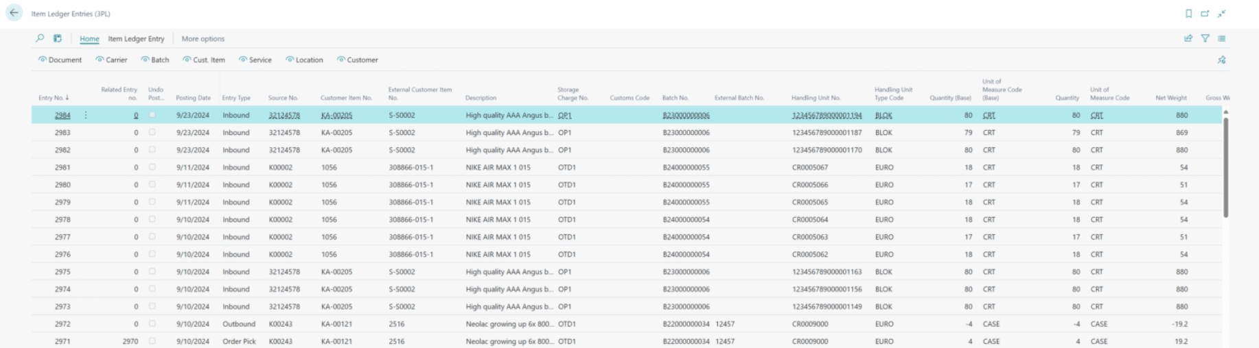 Ces mouvements s’enregistrent dans les items ledger entries, le journal central de 3PL Dynamics. C’est votre source unique de vérité pour comprendre l’historique complet d’un article.